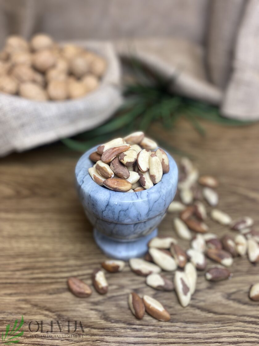 BERTOLETIJOS RIEŠUTAI  – traškūs, riebūs ir sotūs ypatingo skonio dideli riešutai, kurie ne tik praturtins jūsų kasdieninę mitybą, bet ir aprūpins reikalingomis medžiagomis.   SAVYBĖS:  prisideda prie imuniteto stiprinimo, o sudėtyje esantis selenas padeda palaikyti skydliaukės funkciją ir apsaugo nuo širdies bei kraujagyslių ligų, taip pat gerina nuotaiką. G ausūs baltymų, ląstelienos, seleno, kalcio, magnio, kalio ir riebiųjų rūgščių, kas gali padėti mažinti cholesterolio kiekį kraujyje, tinka vartoti esant aukštam krujo spaudimui. PANAUDOJIMO GALIMYBĖS: salotoms, kulinarijoje, košėms, varškei, kokteiliams, daržovėms, ledams gardinti, užtepėlėms, granolai ruošti, ar vartoti vienus kaip svekesnį užkandį.  DŽIOVINTUOSE VAISIUOSE, RIEŠUTUOESE AR UOGOSE mikroelementų koncentracija palyginti su šviežiais, yra keliskart didesnė, nes, kad gautume tiek pat mineralinių medžiagų, šviežių vaisių reikėtų suvalgyti net kelis kilogramus, todėl džiovinti, vaisiai, uogos – geras pasirinkimas norint praturtinti mitybą vitaminais. Džiovinant vaisius ir uogas išgaruoja vanduo, o visos kitos žmogui itin reikalingos medžiagos išlieka. Kilmės šalis: Peru