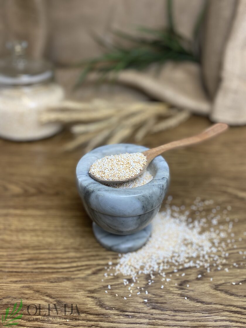 BURNOČIO SĖKLOS išpūstos – neturi jokio specifinio skonio, labiausiai primena švelaus riešuto skonį. SAVYBĖS: lengvas, greitai įsisavinamas, tinka laikantis BE GLIUTENINĖS mitybos, jose yra vitaminų A ir C, geležies, fosforo, kalio, bei kalcio. Kas padeda puoselėti plaukus, numesti svorio, PANAUDOJIMO GALIMYBĖS: desertams, glotnučiams, granolai ruošti, kulinarijoje, košėms, salotoms gardinti. Kilmės šalis: Lenkija
