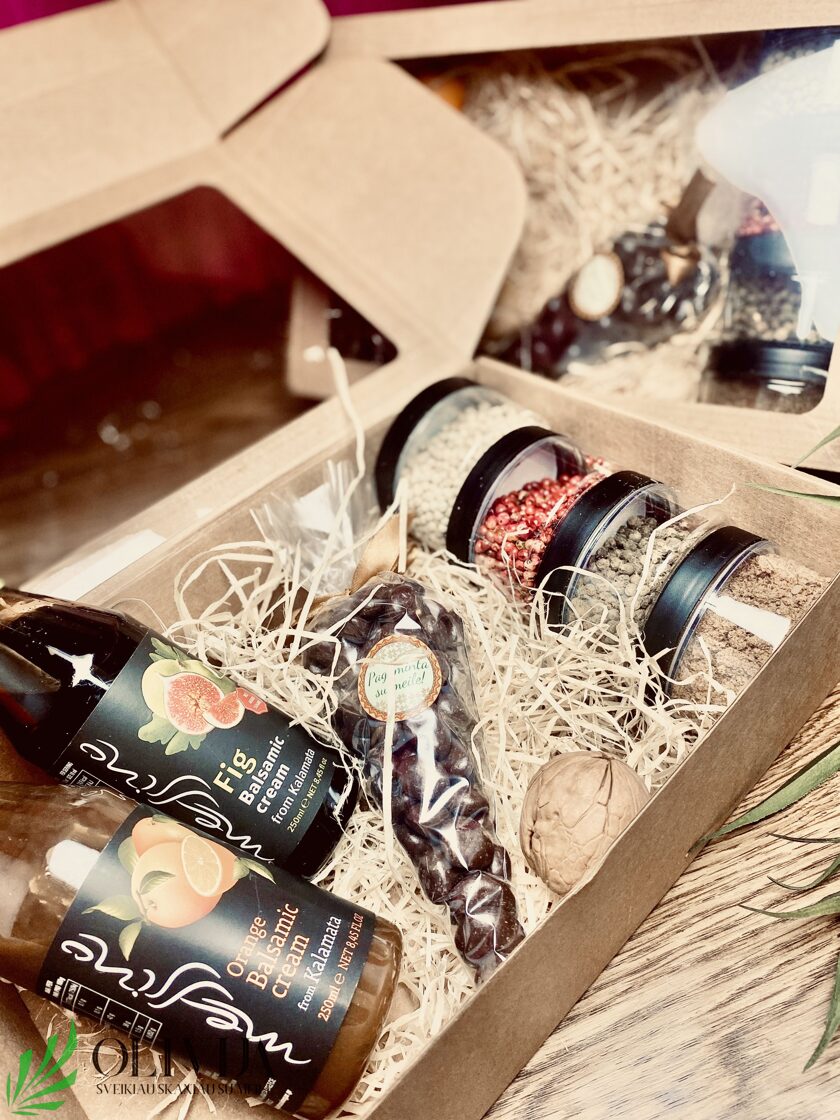 DOVANOS – puikiai tinka šeimos nariams, draugams ar k olegoms švenčių ar kitomis progoms. Mūsų kuriamos maistinės dovanos praktiškos ir įdomios, papildytos netradiciniais ingredientais, tokiais kaip įvairūs prieskonių aliejai, kakvos sviestas, ar netradiciniai prieskoniai, be abejo ir ypatingo skonio skanumynai, riešutėliai, kurie nepaliks abejingų širdžių ! DOVANA „AITRUSIS” SUDĖTIS: Net 3- jų rūšių šviežūs, ypatino skonio pipiriukai indeliuose: raudonieji – 30 gr., žalieji – 40 gr., baltieji – 80gr., druska su žolelėmis, imbieras ar spanguolės juodąjame šokolade ( pasirinktinai) – 150 gr., balzamiko tirštas kremas su figomis ar apelsinais pasirinktinai – 1 but. Puikus rinkinukas nebijantiems eksperimentuoti ! Kilmės šalis: