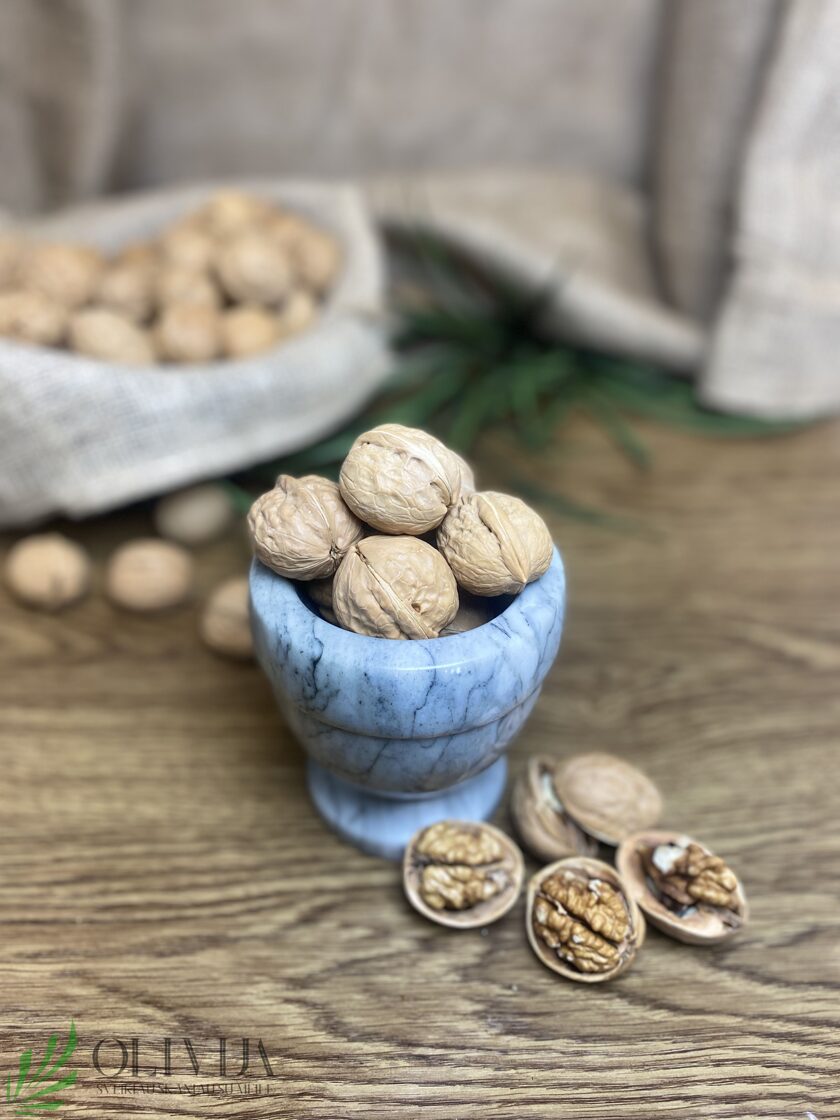 GRAIKIANIA RIEŠUTAI negliaudyti  – populiarus ir maistingas užkandis, turintis daug naudingų savybių, kevalas padeda apsaugoti riešutus nuo oksidacijos, taigi jie ilgiau išlieka švieži ir nepraranda savo maistinių savybių. SAVYBĖS:   vienas iš geriausių augalinių omega-3 šaltinių, kurie palaiko širdies ir smegenų sveikatą. Puikus baltymų šaltinis, todėl puikiai tinka vegetariškoms ir veganiškoms dietoms. Graikiniai riešutai yra turtingi vitaminais E, B grupės ir mineralais magnio, fosforo, cinko. Juose yra antioksidantų, kurie padeda kovoti su oksidaciniu stresu ir uždegimais. Reguliarus graikinių riešutų vartojimas gali padėti sumažinti cholesterolio kiekį kraujyje ir pagerinti širdies sveikatą. PANAUDOJIMO GALIMYBĖS:   gali būti valgomi tiesiogiai kaip sveikas užkandis, jie puikiai tinka salotoms, suteikdami skonio ir traškumo. Graikiniai riešutai gali būti naudojami pyraguose, sausainiuose ir kituose desertuose, arba sumalami į pastą ir naudojami kaip užtepas arba priedas.   Iš graikinių riešutų galima gaminti aliejų, kuris gali būti naudojamas salotų padažuose ir marinatuose. Kilmės šalis: Kinija