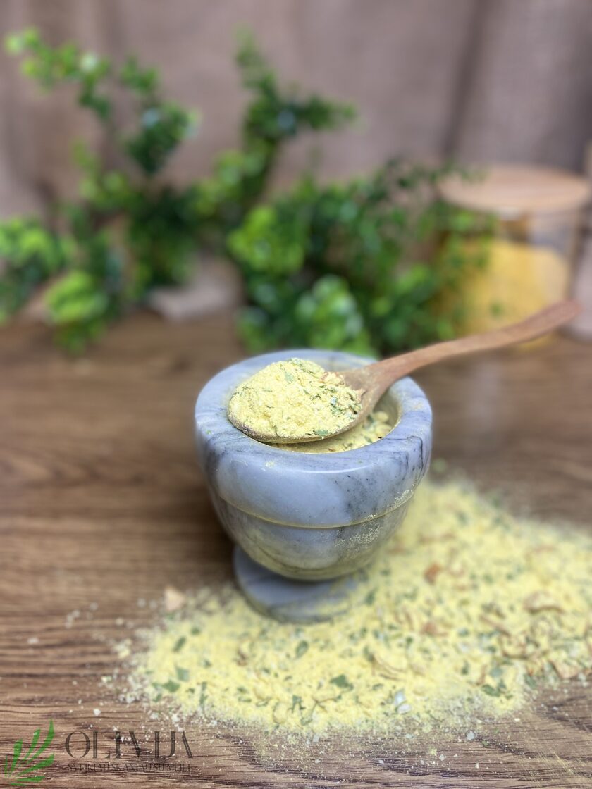 SU DŽIOVINTOMIS LIETUVIŠKOMIS voveraitėmis – kremiškas, tirštėjantis prieskonių mišinys su džiovintomis voveraitėmis itin lengvos, kremiškos tekstūros, kvapnus su prieskoninėmis žolelėmis. SUDĖTIS: svogūnai kepti ir džiovinti, petražolės, porai, ciberžolės, džiovintos lietuviškos voveraitės 10%, augaliniai riebalai, grietinėlė,pieno milteliai, bulvių drožlės, bulvių krakmolas, kvietiniai miltai. PANAUDOJIMO GALIMYBĖS: makaronams, ryžiams, sriuboms, koldūnams, padažams, virtiniams, bulvėms gardinti. Kilmės šalis: Lietuva